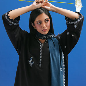 The Bottle Green Cotton Embroidered Kurta from our Spring The Tea '25 Collection features a straight silhouette, V neckline, three-quarter embroidered sleeves.